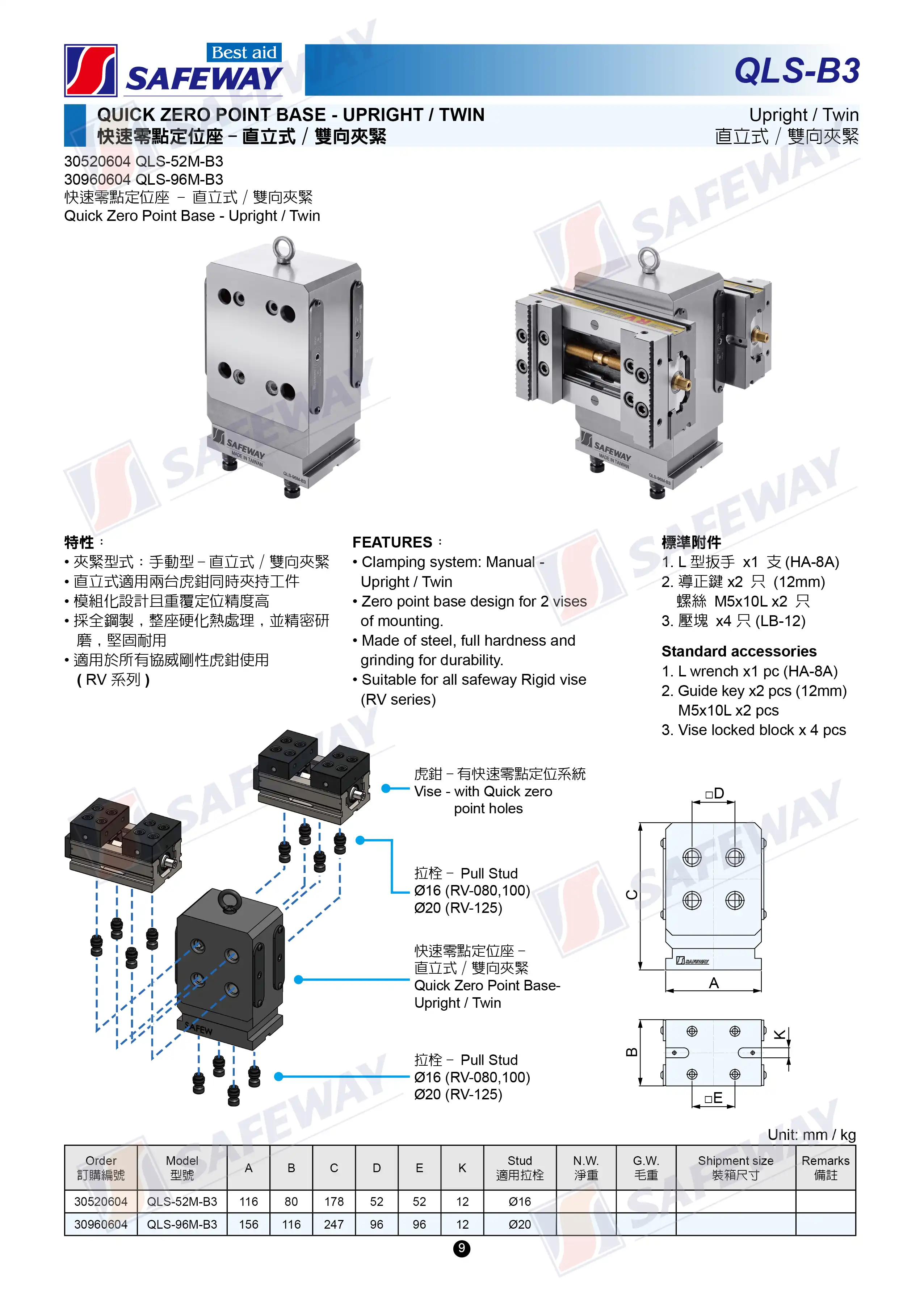 - 夾緊型式: 手動型-直立式/雙向夾緊